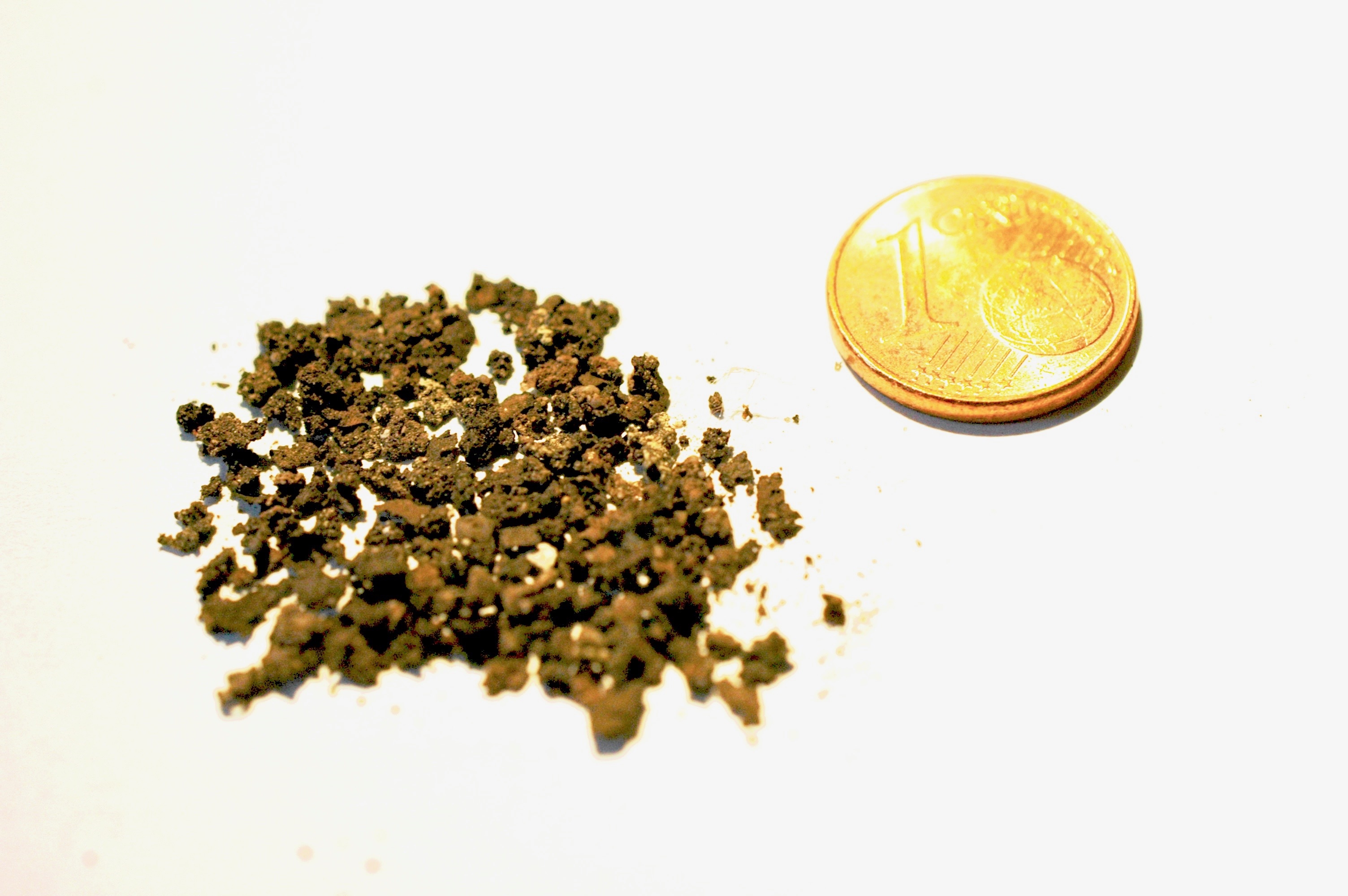 das Buch von LARSEN heißt nicht umsonst: "Die Jagt nach dem Sternenstaub". Die in Frage kommende Fraktion, die man nach dem Sieben durchsuchen muss (kleiner 0,4mm mit Maximum an Meteoriten bei 0,2mm) ist in der Tat Staub und das trifft natürlich auch für die vielen irdischen Fake-Meteoriten zu. Deshalb landet dergleichen auch auf hohen Dächern. Eine Hilfestellung bei der Unterscheidung ist: Wenn mehrere ähnliche Objekte in einer Probe sind, sind sie mit sehr großer Wahrscheinlichkeit irdisch. Das trifft ja auch auf Gerhards Krümel zu.