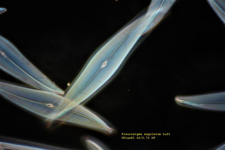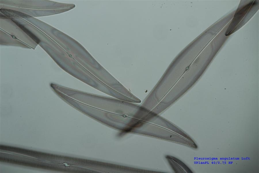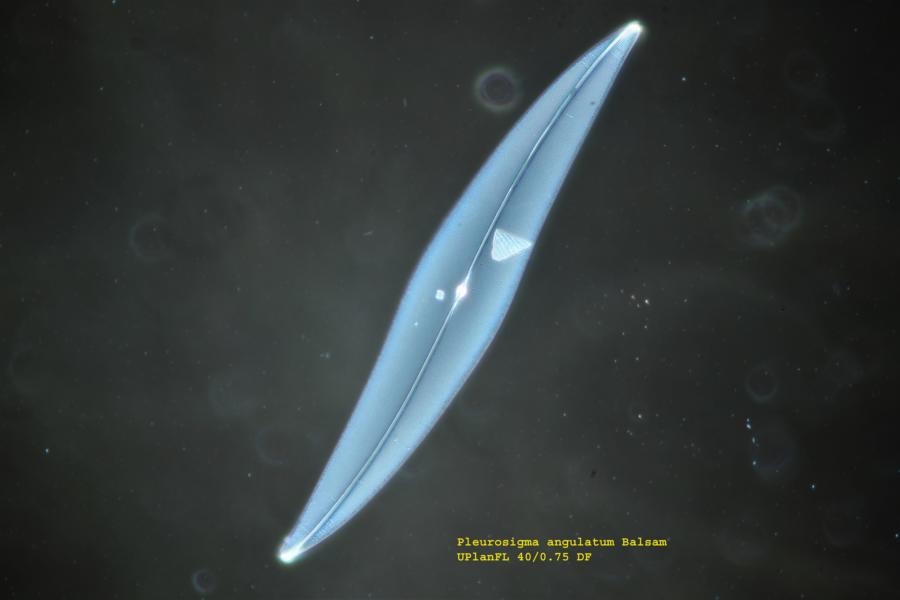 Nun habe ich aus dem Set, das ich vor vielen Jahren von Göke gekauft habe Pleurosigma angulatum in beiden Medien gefunden. Visuell ist es tatsächlich so, dass ich mit einem UPlanFl 40/0.75 PH2 unendlich von Olympus. Im HF einen deutlich besseren Kontrast erhalte und die Auflösung ist auch besser. Ich habe leider kein reines HF-Objektiv beim 40er. Die Bilder werden immer etwas schlechter durch Jpeg, aber ich hoffe, dass man den Unterschied doch noch erkennen kann. Keine Stacks!