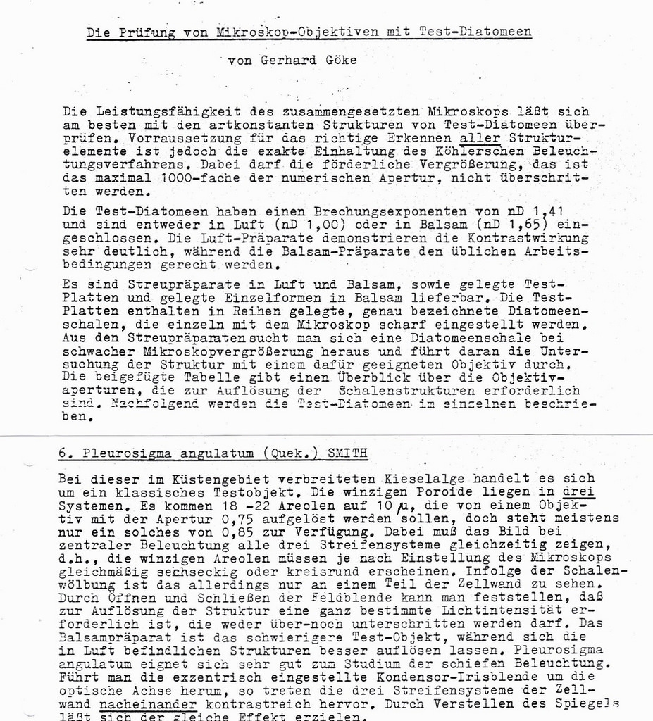 Göke gibt für seine Test-Diatomeen in Balsam nD 1,65 an.