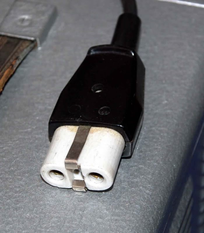 das sind "uralte" Heißgerätestecker aus den 50er / 60ern! Die waren damals an vielen Haushaltsgeräten z.B. Bügeleisen, Waffeleisen etc.