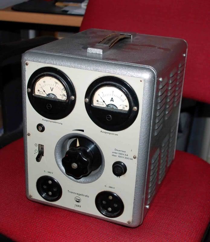der in diesem Fall dieses schöne alte Stück DDR-Technik ( Trenntransformator ) mit Strom versorgt: