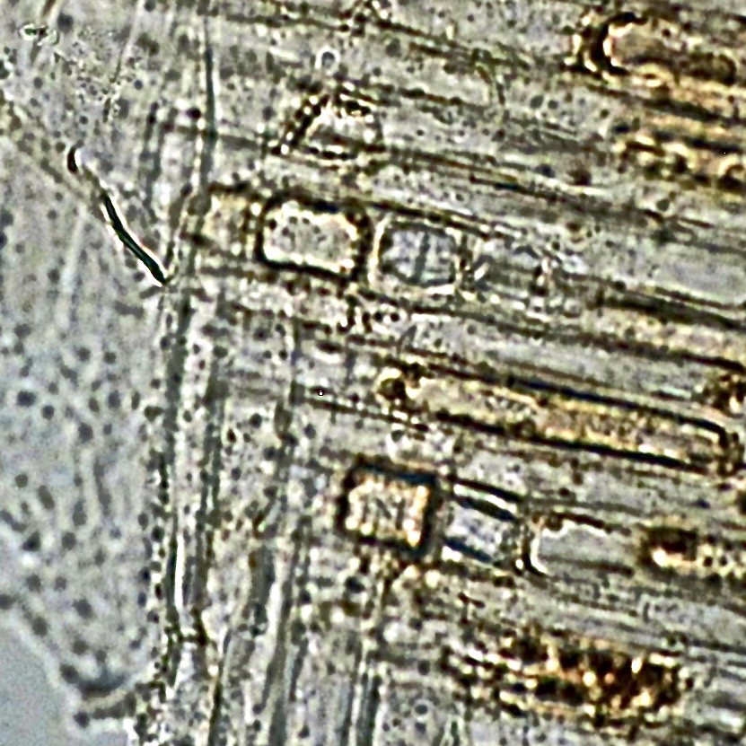 Nachfolgend ein neuer Versuch mit 6 Bildern. Könnten die in Bildmitte diagonal liegenden Zellen Kristalle sein ? Ich bin leider unsicher !