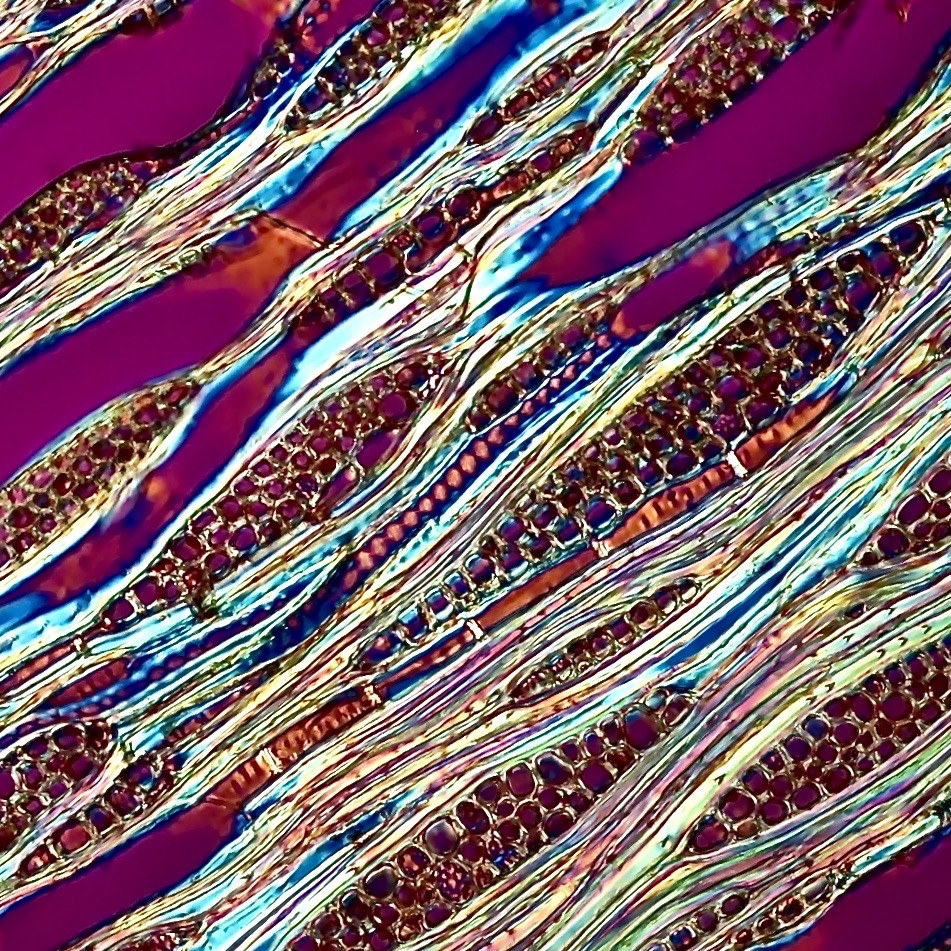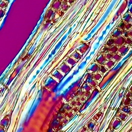 Das stimmt nicht die Ca-Oxalatkristalle leuchten in der Durchlichtpolarisation im ungefärbten Schnitt traumhaft intensiv. Wenn er allerdings mit Chlorix "gesäubert" wurde ist die Herrlichkeit verschwunden.