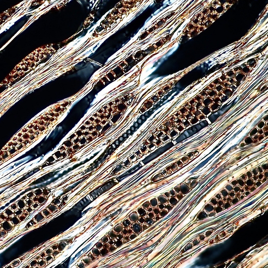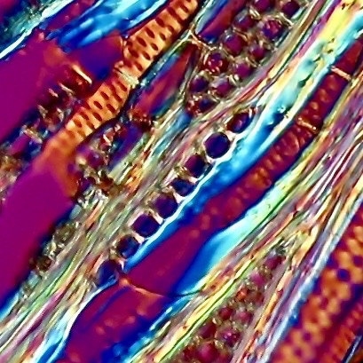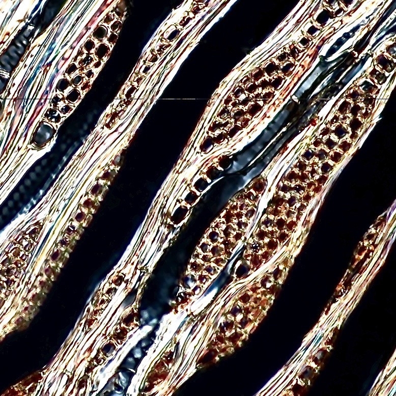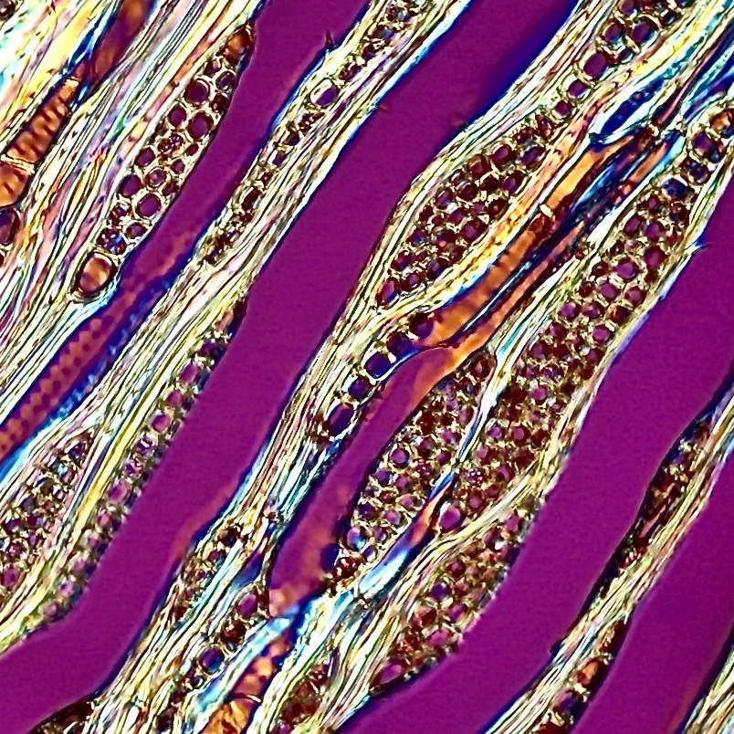 Ich vermute , es sind keine Kristalle, da sie im DL-POL nicht hell erscheinen. Wahrscheinlich sind es auch einreihige Holzstrahlen.