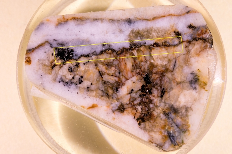 Was du hier abgebildet siehst ist kein Dünnschliff sondern ein Anschliff. Ein Mineral welche eingegossen in Kunstharz, geschliffen und Poliert ist. Ich habe voriges Jahr ein Video dazu gemacht wie ich die Anschliffe herstelle. Das Video kannst du hier beobachten: http://erzanschliffe.ronaldschulte.nl/index.html