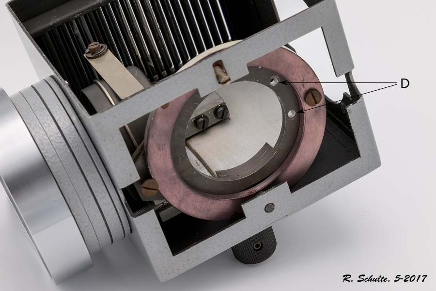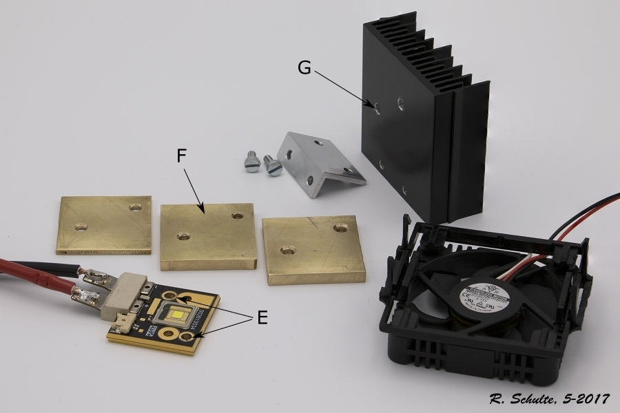 ,F' sind drei Messing Platten die dienen um das LED so zu montieren das es genau an dieselbe Stelle liegt wie das Halogen war.