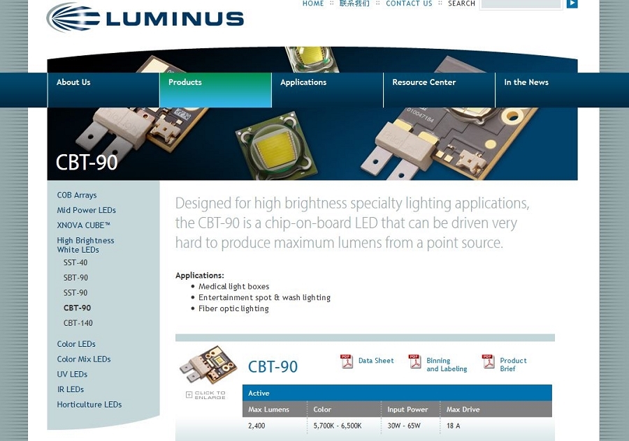 Hier im Forum habe ich schon mehr gelesen über die Power LEDs Luminus CBT-140 und CBT-90 LED.