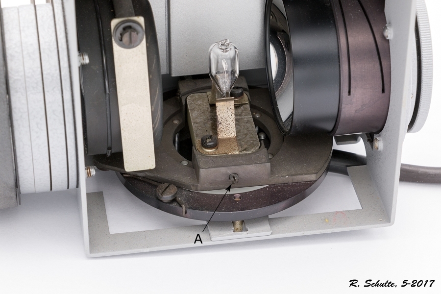 Schraube ,A' entfernen und Halogenlampensockel ausbauen.