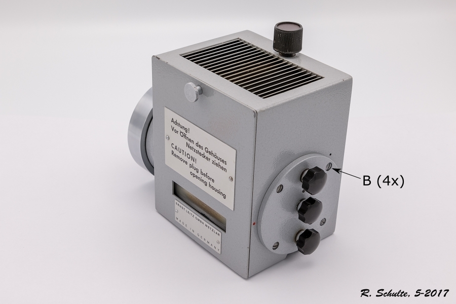 Vier Schrauben ,B' entfernen und den Deckel ausbauen.