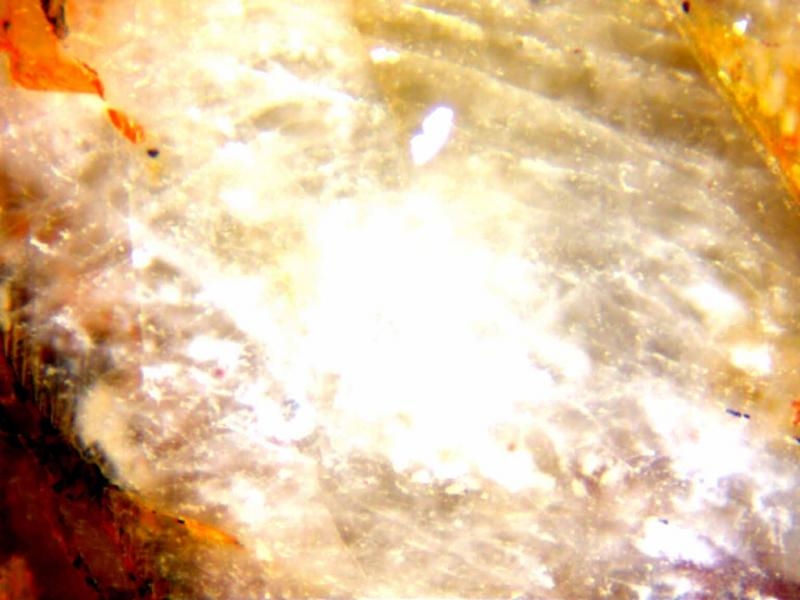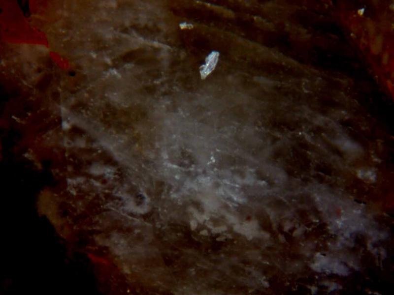Ich habe dann mit einer Mikroskopkamera ein Dunkelfeld-Auflichtbild eines Erzanschliffes mit dem 10x-HD-Objektiv aufgenommen, und zwar bei zwei verschiedenen Belichtungszeiten (12,8 ms und 21.7 ms). Beide Belichtungszeiten wurden so gewählt, dass das Bild mit der 100 Watt Halogen bei voller Leistung, also 12 V, am Monitor eher dunkel erschien (21,7 ms) bzw. fast kaum noch zu erkennen war (12,8 ms). Anschließend nur Wechsel des Lampenhauses auf XHP-50 LED, betrieben mit 3000 mA.