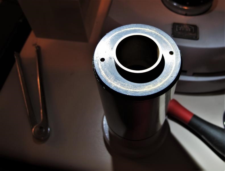 dieses edle "Ofenrohr" von Zeiss ist ausziehbar, so dass man fast auf die 160 mm kommt, aber das erste Testbild war ernüchternd. Da ist innen eine Aufnahme für ein 23,2 mm-Fotookular und die macht eine gräusliche Vignettierung. Zum Glück ist die über ein großes Gewinde eingeschraubt und lässt sich mit Stirnlochschlüssel leicht entfernen und dann stimmt es endlich.