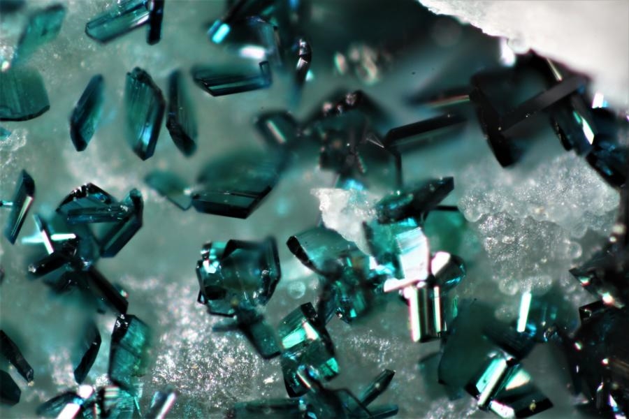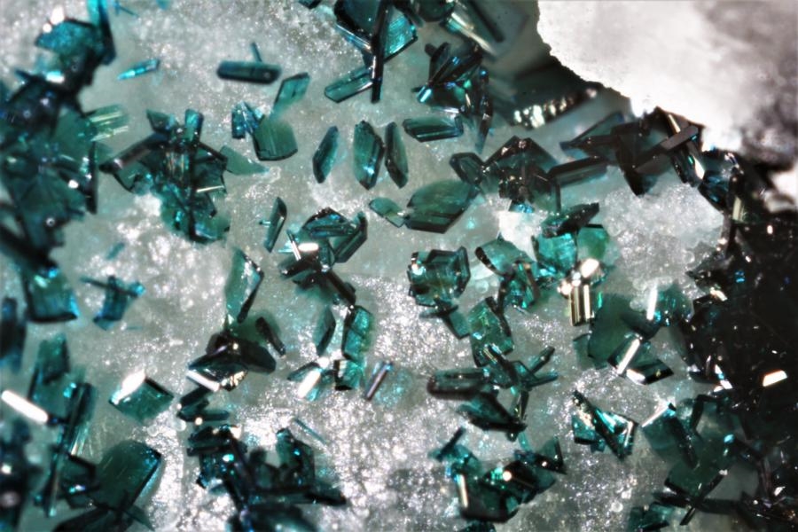 Lieber Heiko obwohl die Farbe nicht typisch ist - sollte eigentlich "methylenblau" sein - halte ich es doch für Klinoklas.Wenn Olaf bestätigt, das die Kristalle flach gelegt gleich richtig orientiert sind für ein Achsenbild würde ich einen Kristall opfern. Messen muss ich erst, dank Wilfried sollte das sogar zuverlässig gelingen. 8)