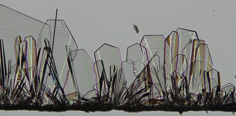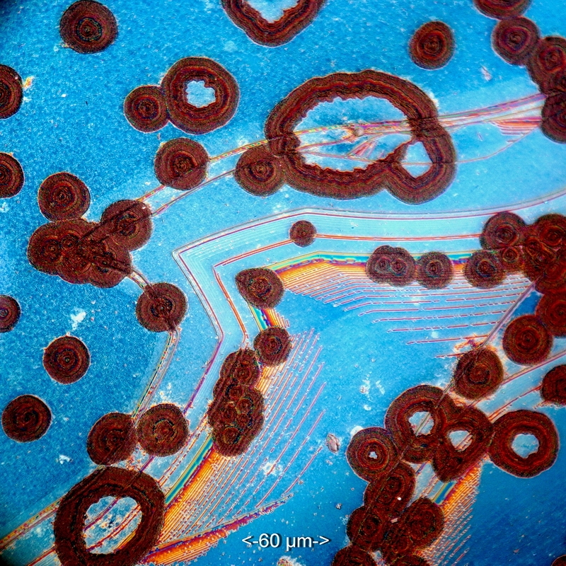 mit dem von Horst angeregten Cadmiumiodid kommen wir den Schichtstufen im Bereich der Elementarzellen schon etwas näher. Hier eine Aufnahme mit dem 40er Epiplan: