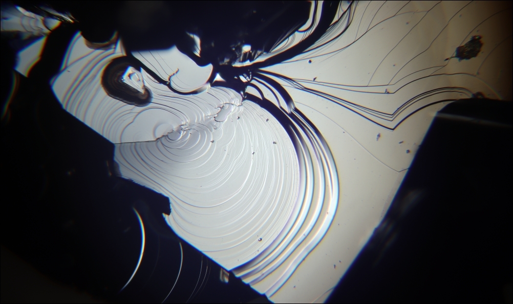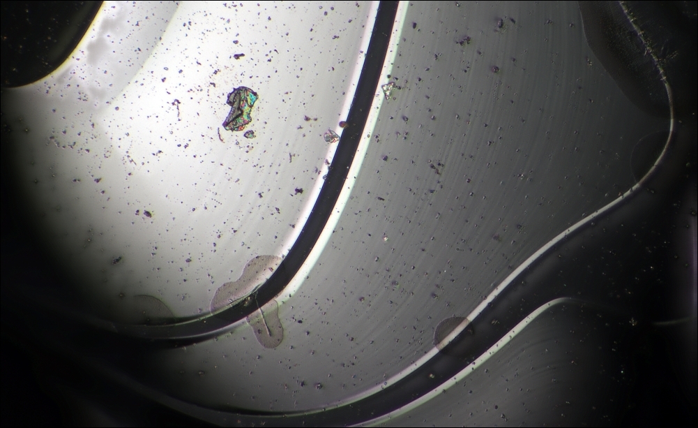 angesteckt von den bisherigen Bildern habe ich meinen Brocken SiC genauer angeschaut und einige Bilder gemacht, das dritte unter dem Stemi.
