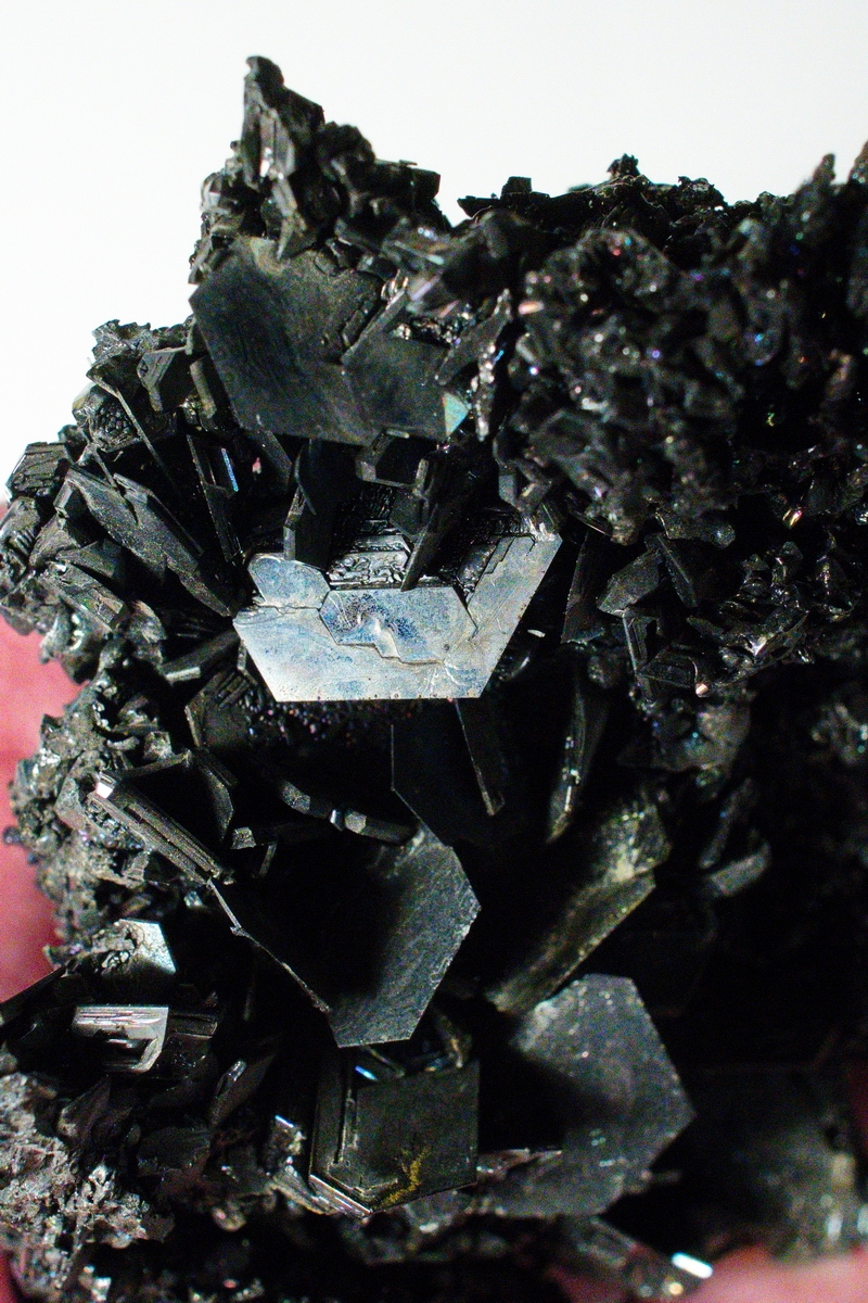 Das ist kein Zufall, wie das folende Bild zeigt. Es sind immer Stüfchen, Kanten und sogar kleine Spiralen auf den Kristallen zu sehen (siehe Pfeil, die war mir aber nicht schön genug...).