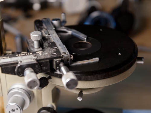 Nichtsdestotrotz möchte ich das Gerät gerne wieder flottbekommen. Dem Gefühl nach ist das Schmierfett ein halbes Jahrhundert alt und kaum eine der Gleitbahnen hat der derzeitigen Funktion nach seine Namen verdient. Der Feinantrieb dreht durch, Drehtisch ist festgebacken... Ich habe zwar keine Ahnung von der Mikroskopie an sich, gehöre aber zu denjenigen die es nicht lassen können jedes Gerät bis auf die letzte Schraube zu zerlegen, nur um zu sehen wie es funktioniert.