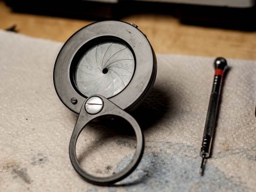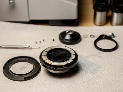 Die Reparatur habe ich anhand der sehr guten Beschreibung ,,Reparatur des Abbee-Kondensors OI-14" aus der Lomo-Infotheke umgesetzt. Dort steht auch sehr gut beschrieben wie man die Blende wider zusammenbaut.