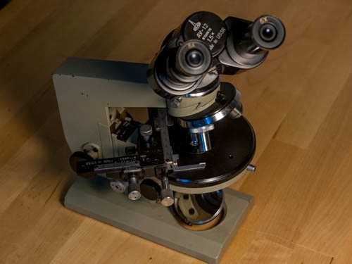 Die Restauration ist damit eigentlich abgeschlossen. Ich habe ein funktionierendes Mikroskop, halbwegs gut ausgerichtet, mit fast allem Zubehör.  ;D