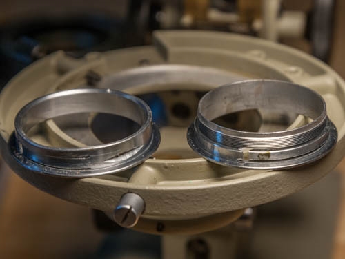 Am Samstag traf das Ersatzteil ein: Ein neuer alter Ring für den Kondensorhalter: