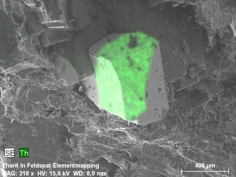 Und zum Schluss noch ein REM Elementmapping mit den SE Elektronen und der Thorium Röntgenstrahlung: