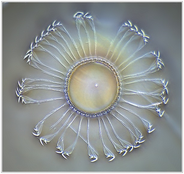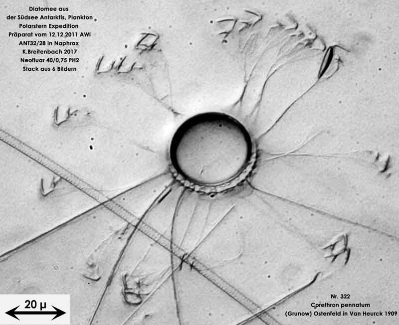 die tollen Bilder erinnern mich auch an das AWI. Vor Jahren bekam ich von einer Expedition 1992 der Polarstern in die Antarktis etwas Material. Es ist sehr schwer eine Corethron gut erhalten zu finden. Hier ein Experiment, eine Spielerei mit dem Heine-Kondensor.