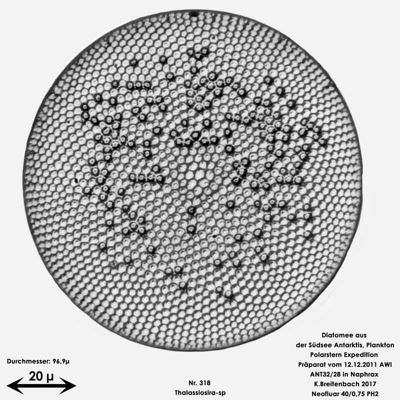 Bild 9 Diatomee aus dem anarktischen Ozean Präparat: ANT32/28; Gattung: Thallassiosira sp.