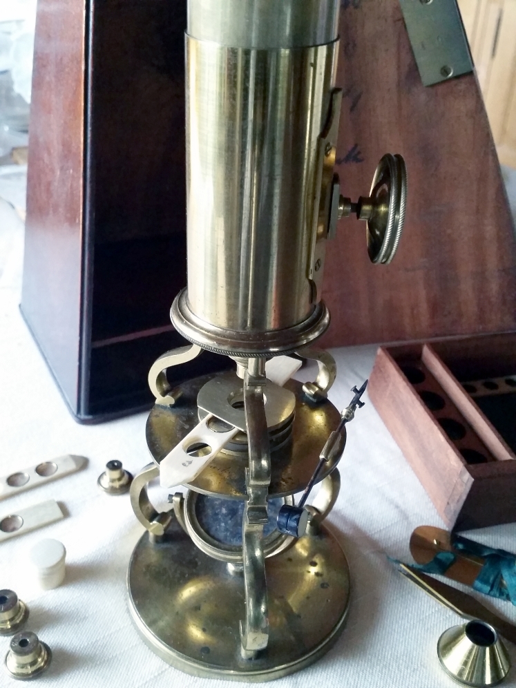 ich habe damals bei deinen Präparateschiebern aus Bein die Glimmerplättchen herausgenommen und gereinigt vor den Fotos. Aber mein Mikroskop ist natürlich etwas jünger als dein schönes Culpeper.