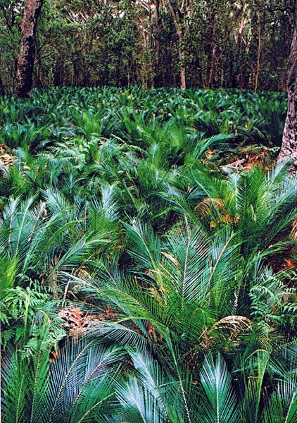 Abb. 4: Wie Unkraut - der Burrawang als dichtes Unterholz in einem lichten Eukalyptuswald