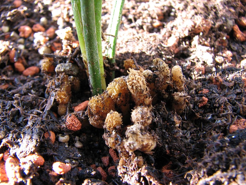 Der unterirdische Spross ist in gewisser Weise beweglich und kann schrumpfen. Solchermaßen wird die empfindliche Wachstumszone unter die Erde gezogen. Dies war bei meiner Probepflanze der Fall, was zu deutlichen Schwierigkeiten bei der Präparation geführt hat.