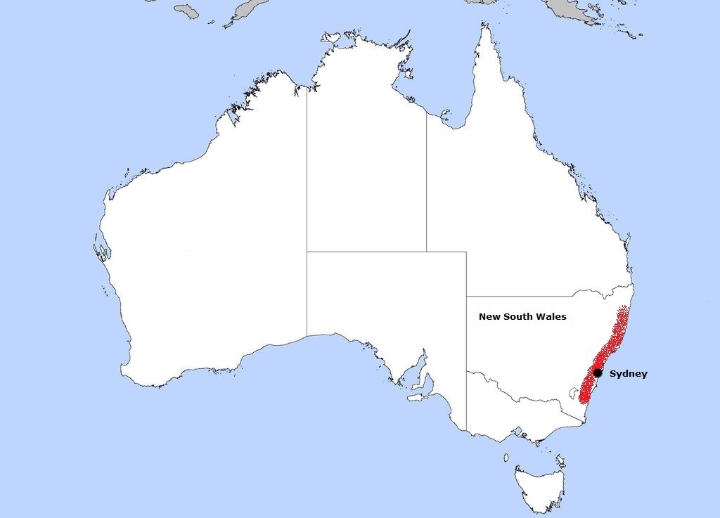 Abb. 3: Das Verbreitungsgebiet von Macrozamia communis liegt an der Süd-Ostküste Australiens