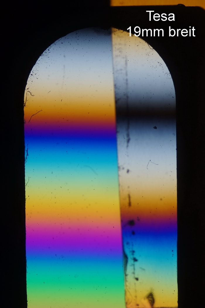 mein Tesafilm ergibt fast lambda-Kompensation und ein ca. 30µm dickes Glimmerplättchen etwas mehr als Lambda/4.