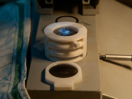 Messmittel: Ich kann die Dicke gegen einen Endmaßkasten abgleichen, das dürfte genau genug sein um zumindest festzustellen ob es in der richtigen Ordnung liegt. Das war es dann aber auch mit meinen Messmitteln, außer natürlich es wird improvisiert. Die Pol-Stereolupe selbst dürfte auch einige Rückschlüsse zulassen.