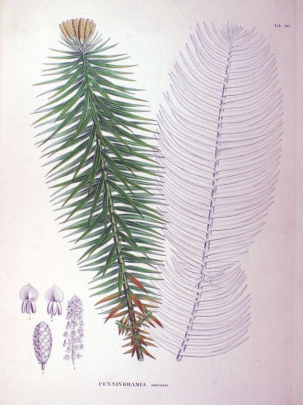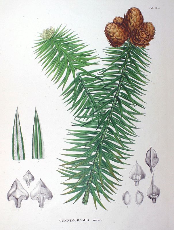 Die Chinesische Spießtanne (Cunninghamia lanceolata var. lanceolata; (Syn.: Pinus lanceolata Lamb., Belis jaculifolia Salisbury, Cunninghamia sinensis R.Br. ex Richard & A.Richard) und die