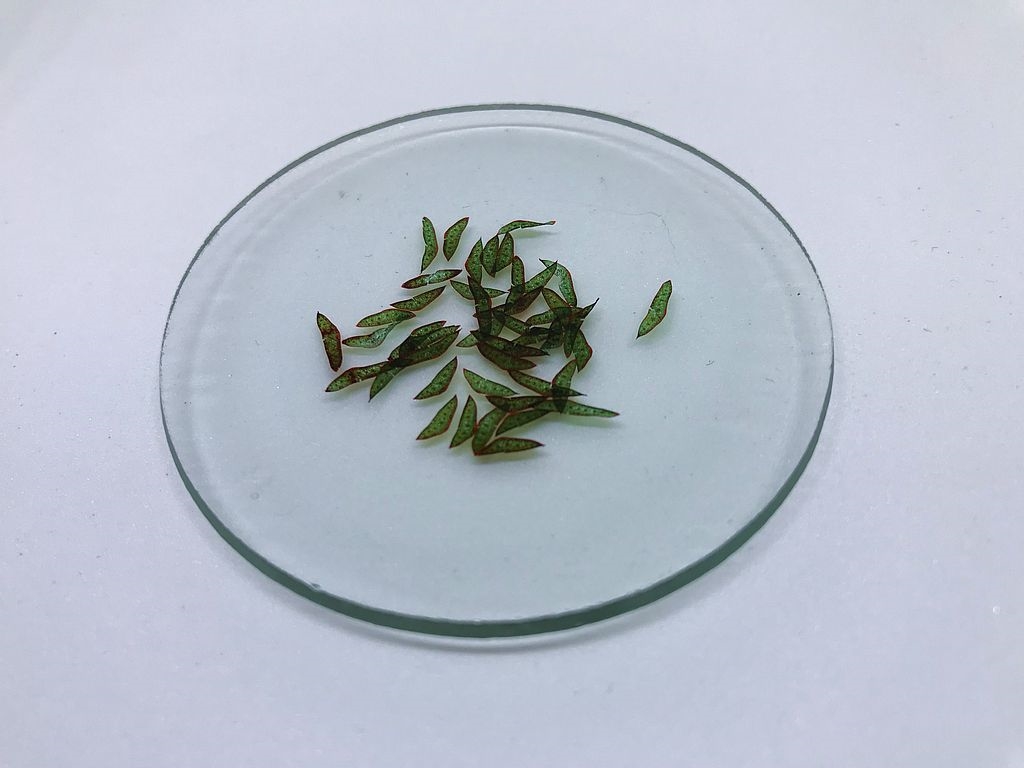 Bild 8: Fertig gefärbte Blattquerschnitte der Chiletanne in der Petrischale