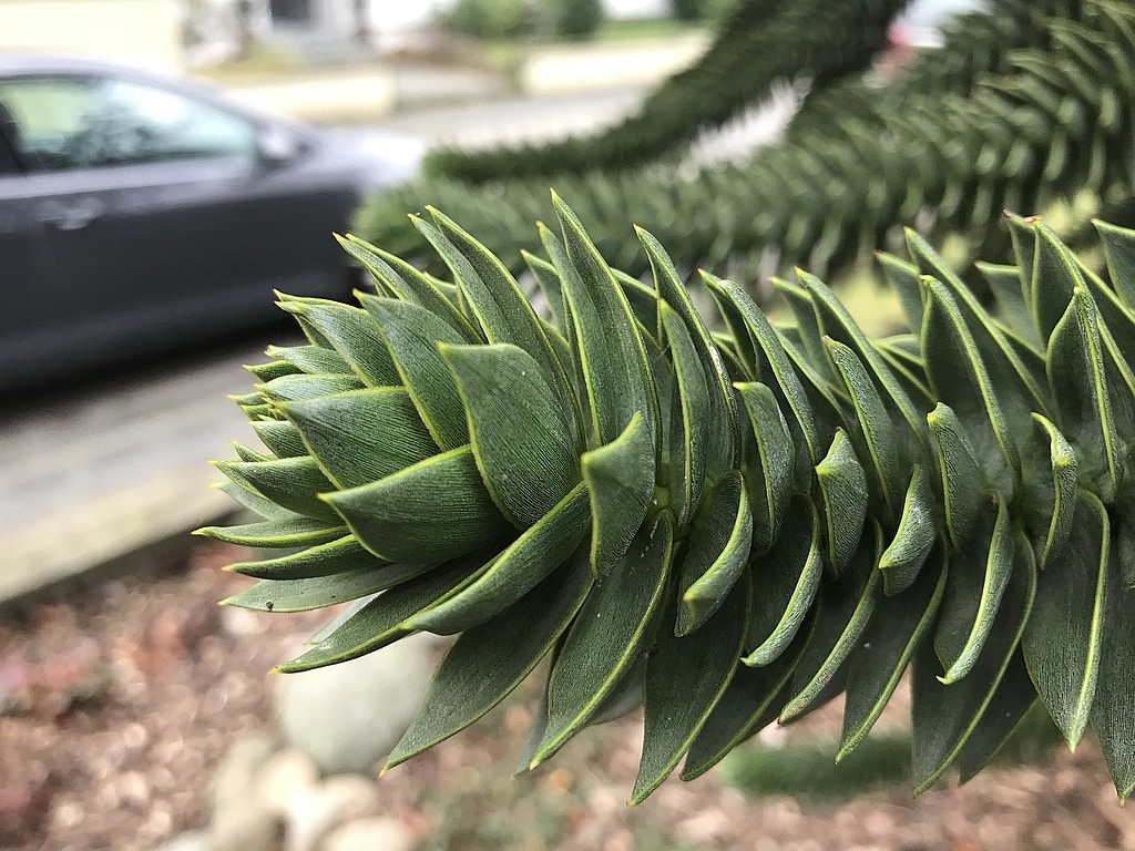 Bild 5: Junger Trieb der Chiletanne, die Dornen an der Blattspitze sind noch nicht vollständig ausgebildet; Wikipedia, von User MdE, CC BY-SA 3.0