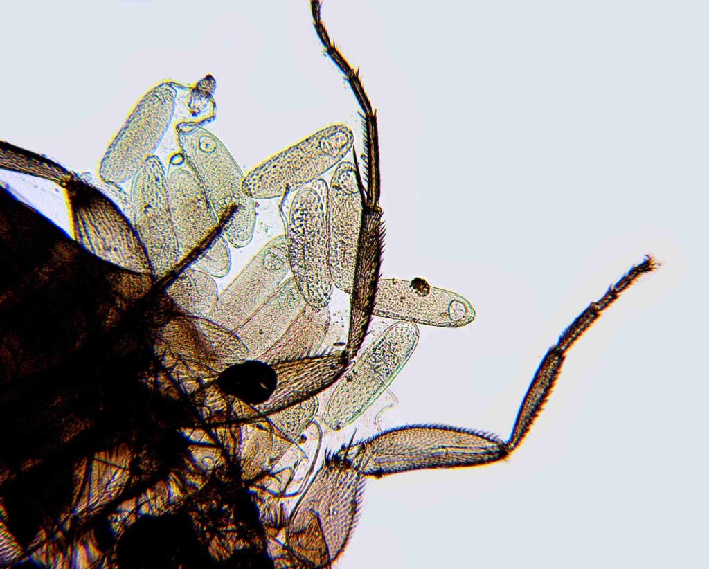 002 unbek. insekt flügellos "eier"? + beine 25x