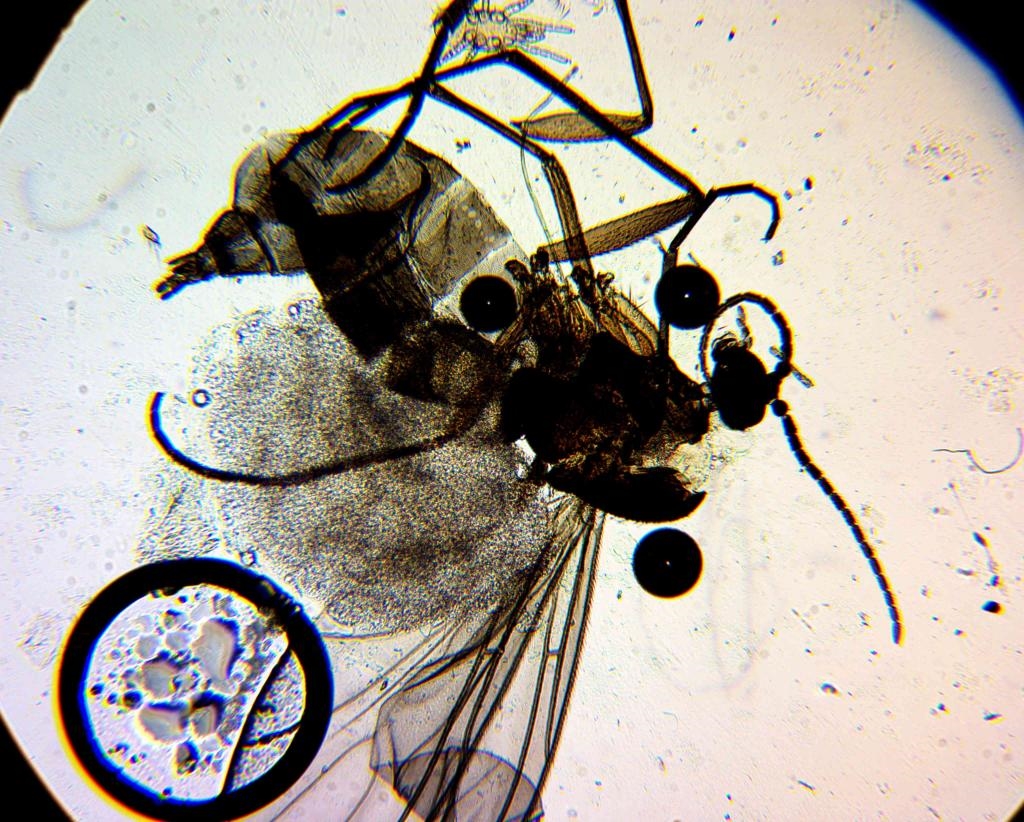 hier zum "eier"-vergleich eine ganz junge gallmücke (cecidomyidae) (so jung vermute ich noch keine eier) 25x: