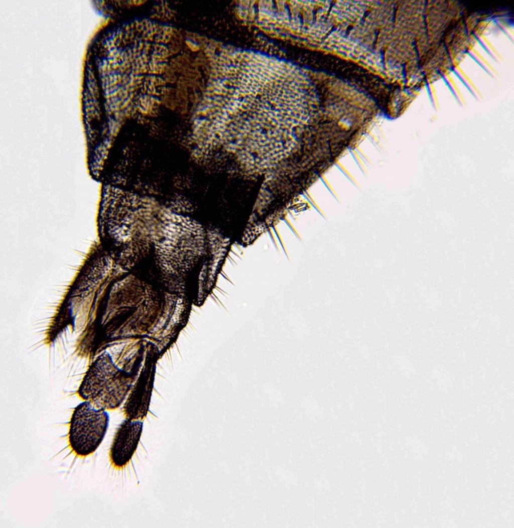 ich hab mich mal -ergebnislos - mit Hilfe von Müller: Bestimmung Wirbelloser Tiere im Gelände daran gemacht. Ich dachte zunächst an Trauermücken, die vom Habitus des Hinterleibes sehr gut an deine Untermieter heankommen. Die habe ich - aus Blumentöpfengeradezu  hervorquellend - auch ständig in meiner Wohnung. Doch da fehlt mir die gegabelte Media. Könntest du bitte  mal ein Bild des gesamten Tierchens durch das Stemi, sowie Details in Auflicht vom Kopf (für Augenstellung und evtl.. vorhandene Ocellen, des Thorax von dorsal, und der gesamten Fühler (zum Vergleich mit der Körperlänge) nachliefern? Die Durchlichtaufnahmen helfen nur begrenzt weiter. Es ist kein Zufall, dass das Stemi nach dem Greenough-Prinzip von einem Entomologen erfunden wurde!