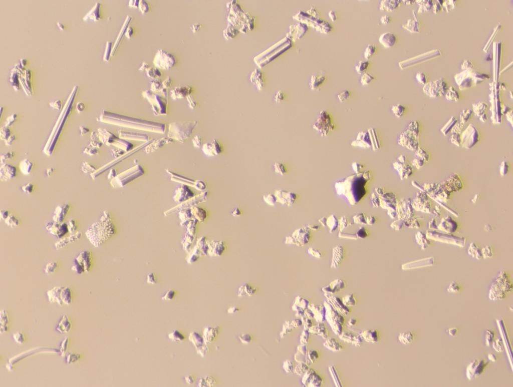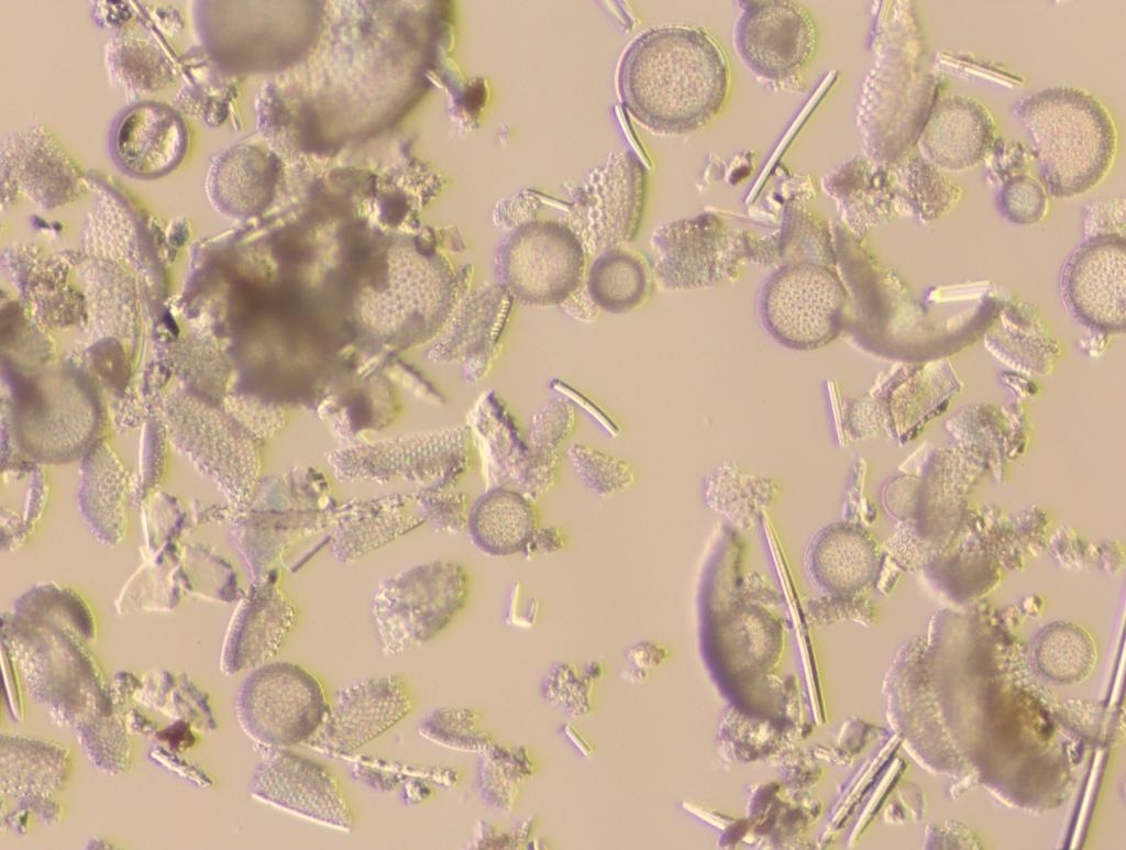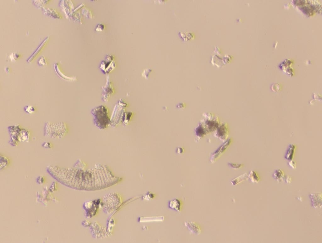 Ziel des Reinigungsversuches war es, die runden und intakten Diatomeen aufzukonzentrieren.