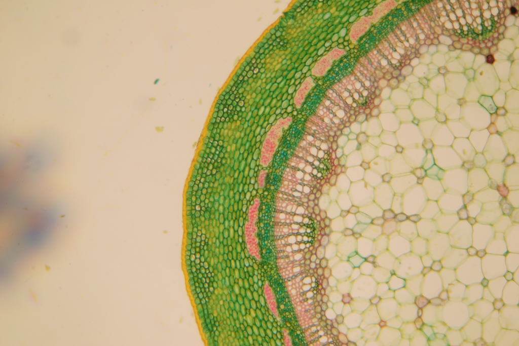 @ Herr Henkel: Bei der ,,schönen Färbung" handelt es sich um eine ,,W3AsimII-Färbung" nach Rolf-Dieter Müller, auf Basis der Wacker W3A-Färbung – die ich dankenswerter Weise beim Mikroskopischen Kollegium Bonn kennenlernen durfte und hier bei einem Querschnitt von Rosa canina angewendet habe.