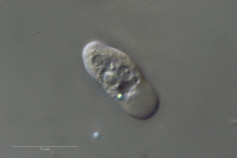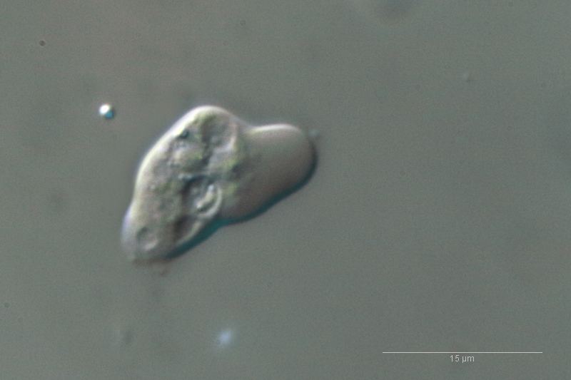 Hier die erste Amöbenart. Ich tippe mal wieder: Es könnte eine der kleinen Vahlkampfia-Amöbenarten sein.