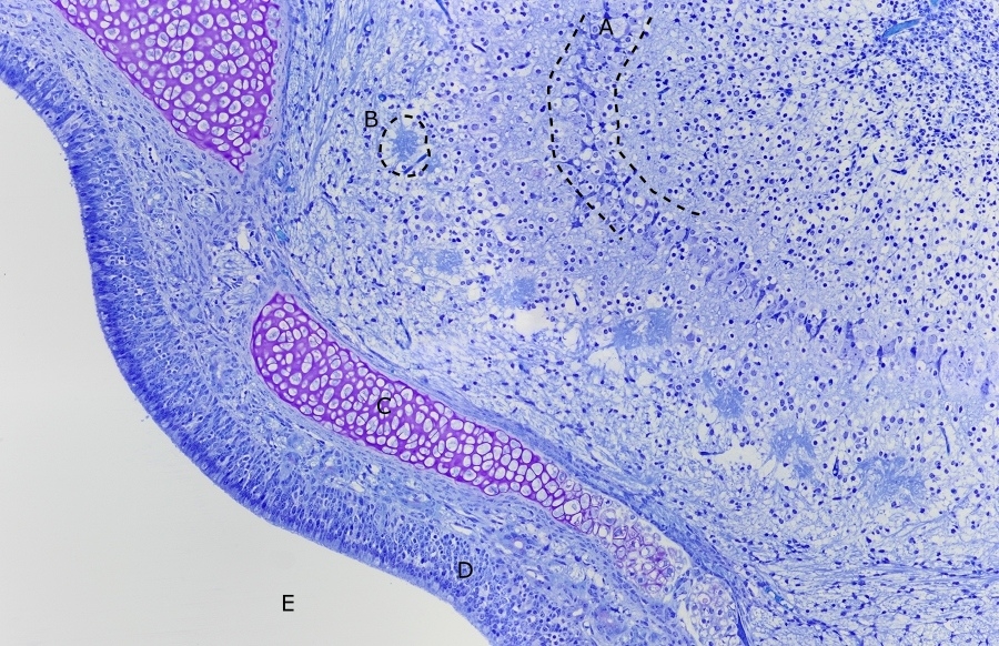 D = Riechschleimhaut, Link zu Wikipedia https://de.wikipedia.org/wiki/Riechschleimhaut