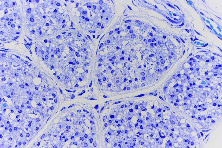 Bild 1, stitch von 40 Bilder, Leitz Plan Fluotar 10x, Kamera: Canon 700D, Farbung: Toluidin Blau in Natriumtetraborat.
