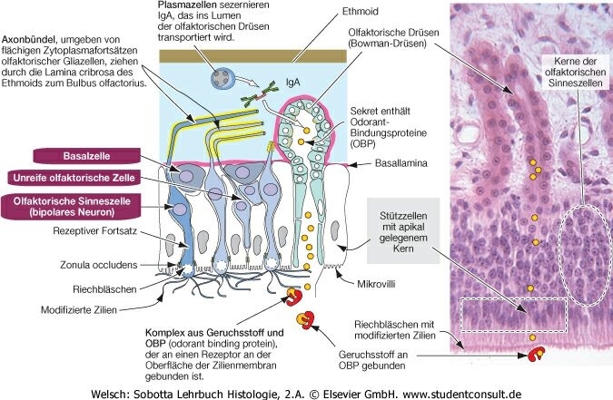 In Deinem Bild 6 meine ich als ziemlich kleine Pünktchen, die Riechköpfchen, zu sehen, aus denen die Zilien der Riechsinneszellen hervorgehen? Hingegen vermisse ich die Bowmandrüsen, die Du in einem anderen Beitrag schon einmal so schön dargestellt hast?