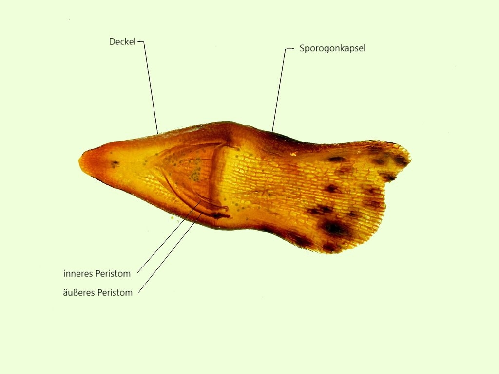 Bild 5: Kapsel ohne Deckel, das äußere Peristom sichtbar. Weiters die raue Seta erkennbar.