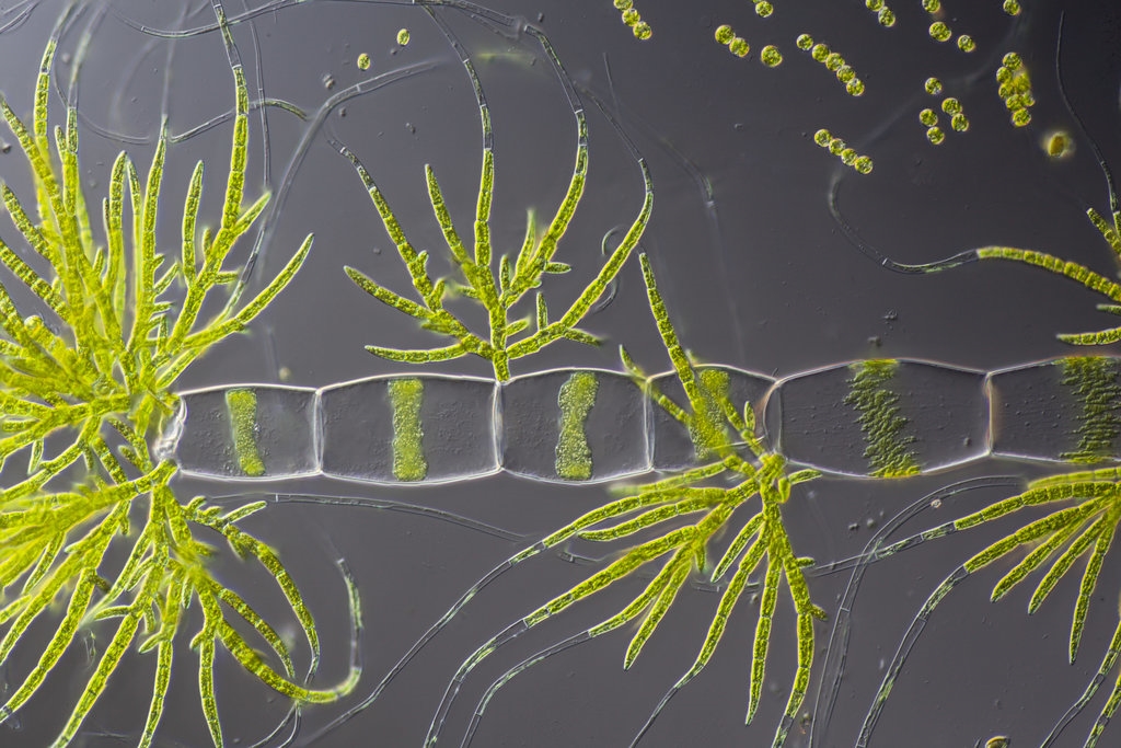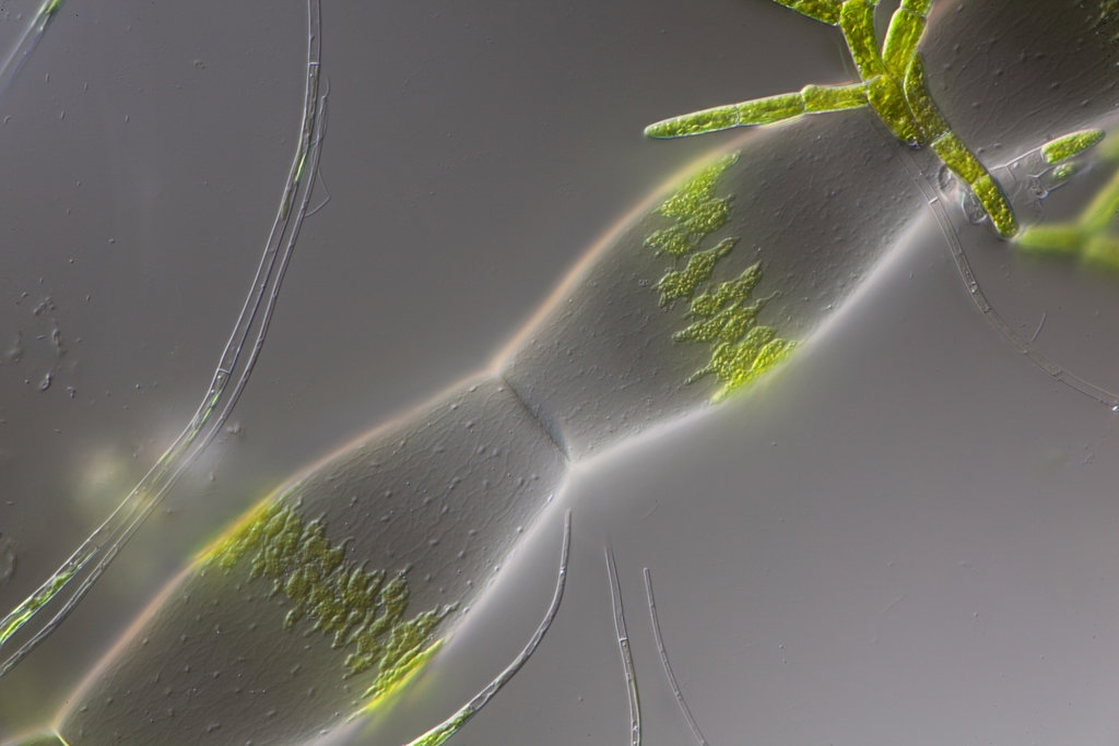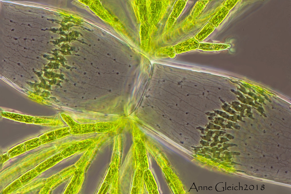 es lohnt sich immer wieder, die vermeindlichen Spirogyra-Watten genauer an zu sehen. Da habe ich schon manche Überraschung erlebt, bis hin zum Wassernetz.