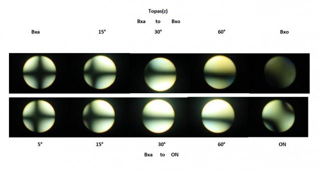 mit Lageänderung von je 15 °Grad, in Richtung der stumpfen Indikatrix.