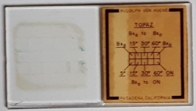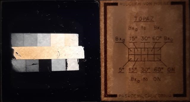 Als zweiachsiges Mineral habe ich einen Topas. Leider kenne ich den Fluorgehalt nicht, und damit auch die Brechungsindices nicht genau, aber vielleicht lässt sich das ja ableiten?
