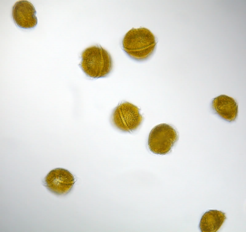 bei den Tennisbällen handelt es sich wohl um Peridinium cinctum. Schalenreste, die ich entdeckte, weisen die typische Felderung auf. Geißeln habe ich keine gesehen, aber ich hatte auch nicht darauf geachtet, da ich gezielt nach Zieralgen suchte.