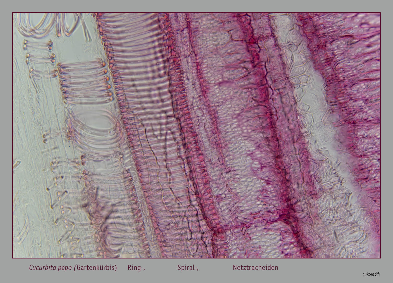Im Kürbis hast du gleich 3 Varianten von Tracheiden nebeneinander: